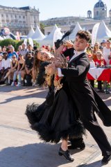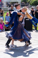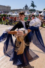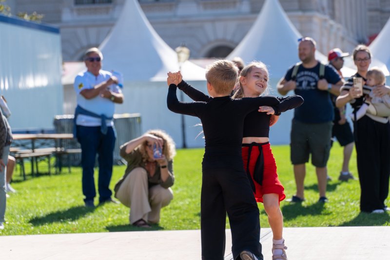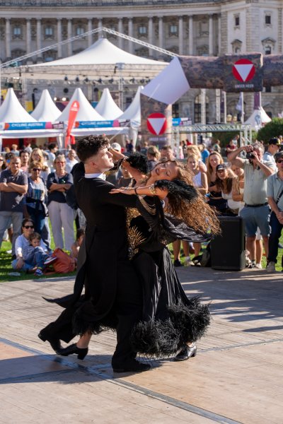 Großer Andrang herrschte den ganzen Tag über am Stand des ÖTSV. Bei (viel zu) heißem Spätsommer-Wetter haben sich zahlreiche Paare des TSK Danceland, UTSC Forum Wien, TSC Eleganza Köflach, TSK Modena und TSK Schwarz-Gold Wien bereit erklärt, unseren Sport in den verschiedenen Leistungsklassen vorzustellen. Nicht nur die hohen Temperaturen, auch die aus Baubrettern bestehende Tanzfläche haben den Paaren alles abverlangt - und sie haben ihre Sache gut gemacht! Das Publikum war begeistert und hat auch die Einladung zum Erlernen des Wiener Walzers mit Jaqcueline Mokrzycki und des Cha-Cha-Cha mit Tim Grabenwöger&Alina Molochnikova bereitwilligst angenommen.