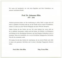 DDr. Otto Biba, Bruder des verstorbenen Prof. Dr. Johannes Biba hat uns gebeten, beiliegendes Dankesschreiben anlässlich der zahlreichen Anteilnahme zu veröffentlichen. Wir dürfen nochmals der Familie Biba unser Mitgefühl zum Ausdruck bringen.